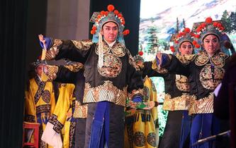 2月11日,表演者在石家庄市正定古城进行民俗表演。