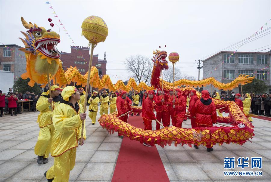 2月11日,江西九江市都昌县阳峰乡金星村村民在舞龙。
