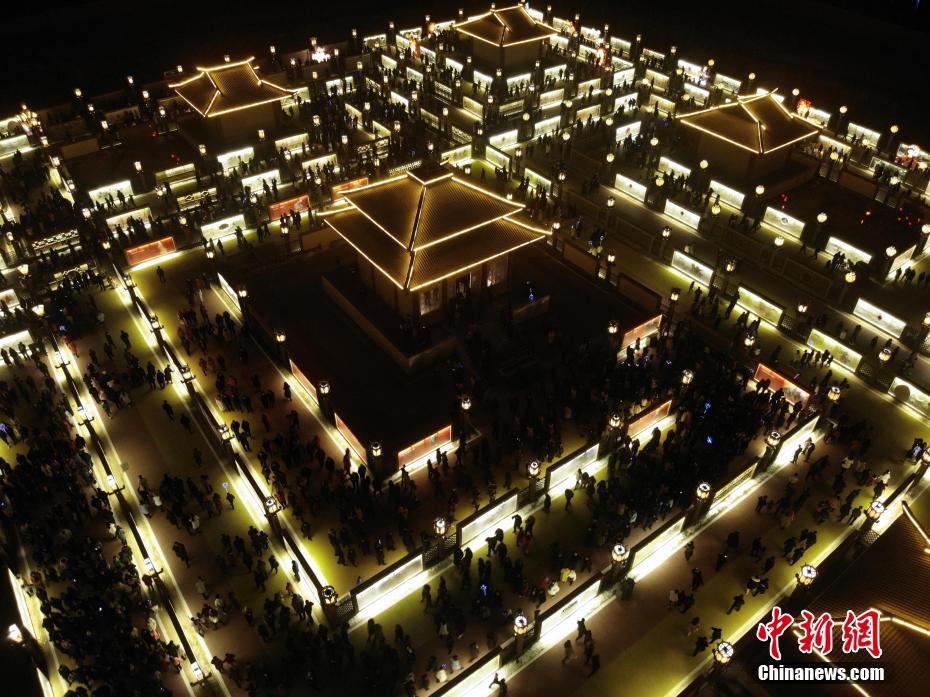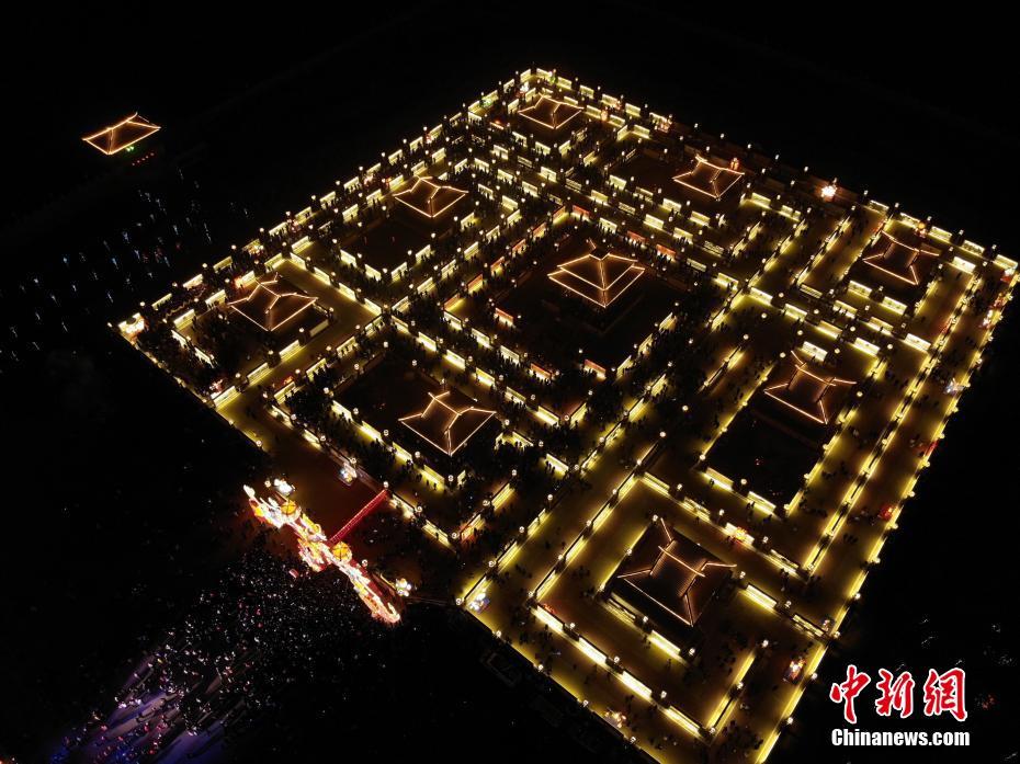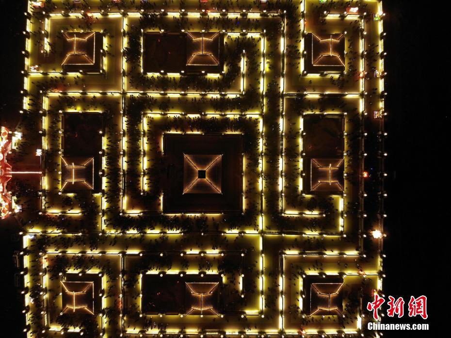 2月12日,农历正月初八,甘肃张掖市上万民众穿越“九曲黄河灯阵”闹新春。当日,张掖市古城村举行点灯仪式,365盏明灯被“点亮”。“九曲黄河灯阵”又称九曲黄河灯会、转九曲等,因灯阵曲折绵延如黄河之龙曲而得名,是传承千年的历史文化遗产。碱滩镇古城村是中国历史文化名村,为“九曲黄河灯阵”的始源地之一。中新社记者 杨艳敏 摄