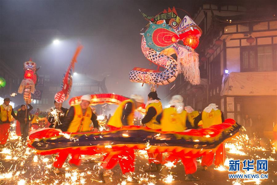 2月13日,人们在贵州省毕节市大方县六龙古镇舞龙。 元宵节临近,贵州省多地举办龙灯节、龙灯展演等活动,喜迎元宵闹新春。 新华社发(罗大富 摄)