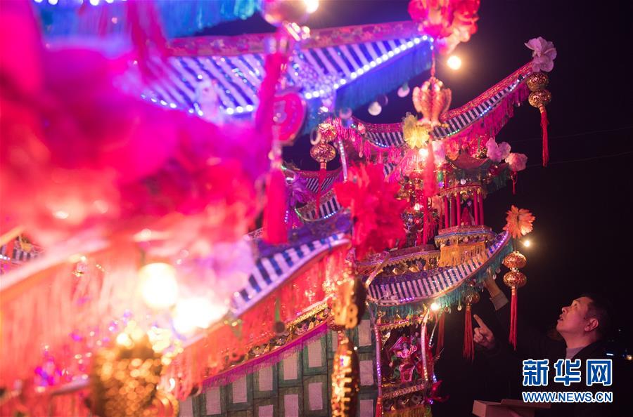 2月12日,在浙江省乐清市北白象镇西刘宅村,村民观看首饰龙。新华社记者翁忻旸摄