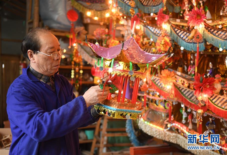 2月11日,在浙江省乐清市北白象镇,林顺奎在家中展示制作首饰龙的配件。 新华社记者翁忻旸摄