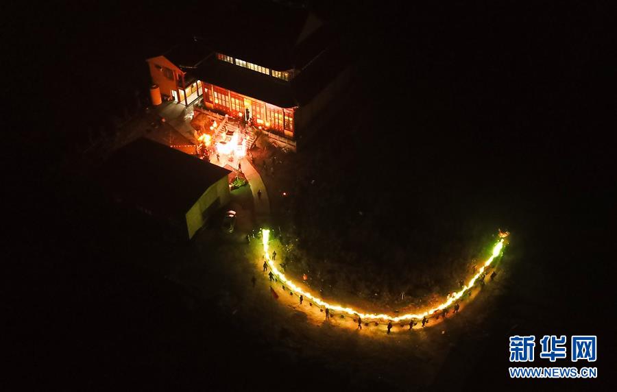 2月12日在浙江省乐清市北白象镇西刘宅村拍摄的首饰龙巡游活动(无人机拍摄)。 新华社记者翁忻旸摄