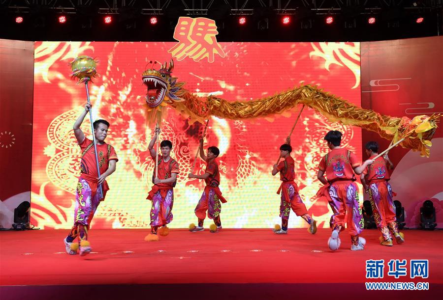 2月15日拍摄的“两马同春闹元宵”开幕式现场舞龙表演。 当日,第十七届“两马同春闹元宵”活动在福州马尾东江滨公园开幕。活动内容包括赠送马祖花灯、马尾东江滨公园灯展亮灯仪式、组团赴马祖与马祖乡亲共庆佳节等。 新华社记者林善传摄