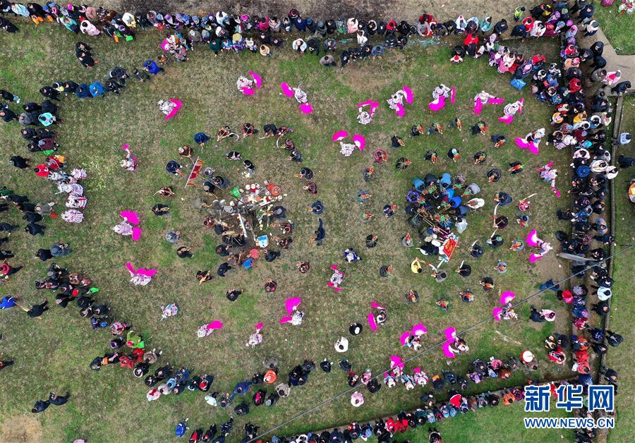 2月15日,广西融水苗族自治县安太乡元宝村苗族群众开展欢庆活动。