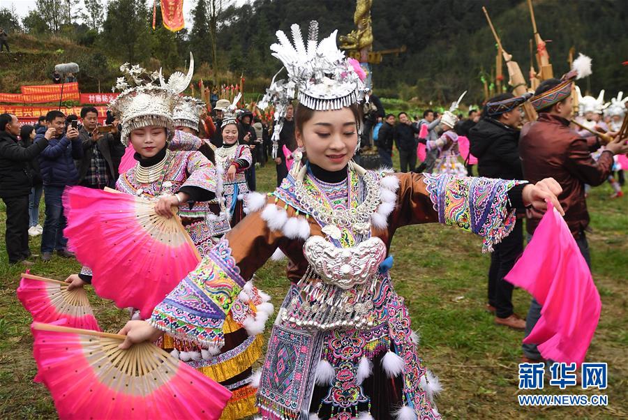 2月15日,苗族同胞在跳舞。新华社记者 张爱林 摄