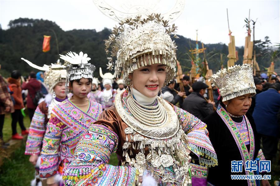 2月15日,苗族同胞在参加欢庆活动。新华社记者 张爱林 摄