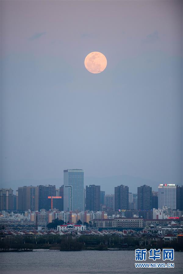 这是2月19日在昆明拍摄的月亮和城市风景。 当日是元宵佳节,本年度第二场“超级月亮”,也是年度“最大最圆月”现身天宇。 据介绍,“超级月亮”是指处于近地点位置附近的满月。此次天象与佳节的“巧遇”,为元宵赏月增加了看点,平添了情趣。 新华社记者 胡超 摄