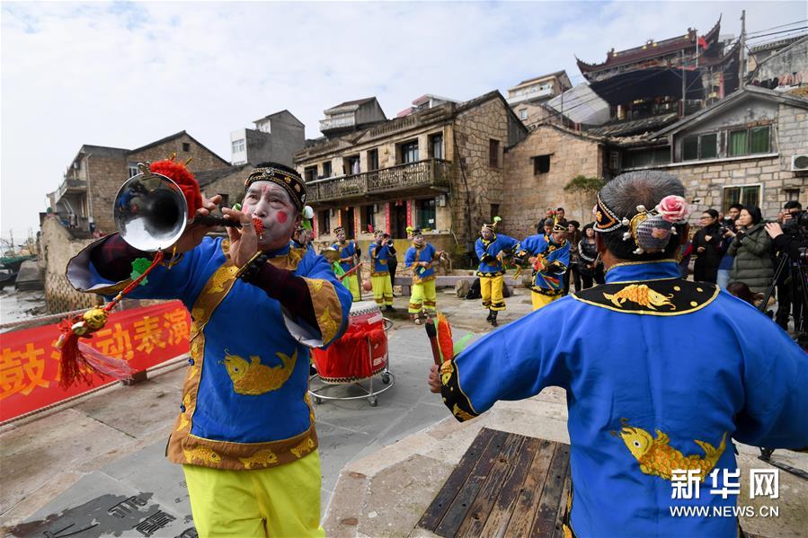 2月19日,中国舞协非遗传统舞蹈影像采集项目工作组在浙江省温岭市石塘镇里箬村采集拍摄大奏鼓表演。