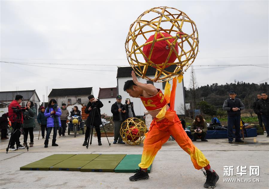 2月17日,中国舞协非遗传统舞蹈影像采集项目工作组在浙江省海盐县秦山街道丰山村万家宅采集海盐滚灯的动作细节。 新华社记者陈晔华摄