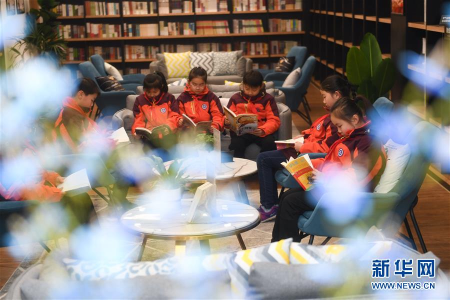 2月21日,合肥市六安路小学的学生们在“城市阅读空间”里阅读。