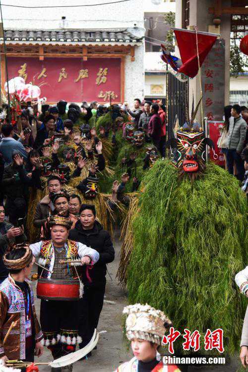 数十名扮成“芒篙”的民众在街道上巡游。王以照 摄