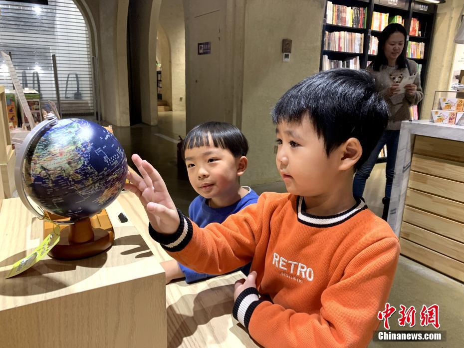 春节过后,不少民众选择走进书店,为自己“充电”。2月23日,西宁一家书店迎来大量阅读爱好者,读者畅游在知识的海洋中,享受阅读带来的快乐。图为儿童在书店内利用地球仪学习地理知识。中新社记者 马铭言 摄