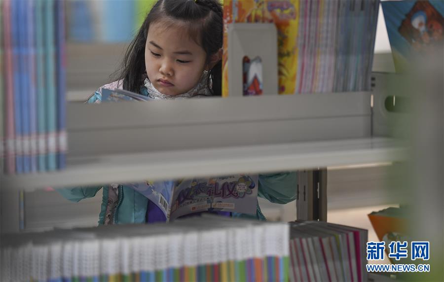 2月24日,6岁的小读者刘小飞在府谷县图书馆少儿阅览区翻阅图书。 新华社记者 陶明 摄