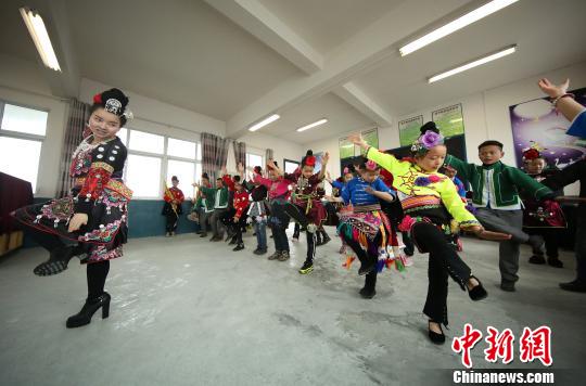 图为老师在教兴趣班的学生跳“苗族锦鸡舞”。 黄晓海 摄