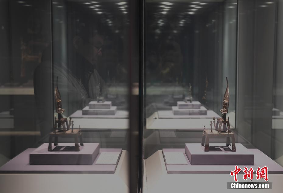 2月27日,参观者在一尊佛教造像前驻足。当日,“佛影灵奇——十六国至五代佛教金铜造像”特展在浙江杭州举行,吸引了众多市民前往观赏。中新社记者 王刚 摄