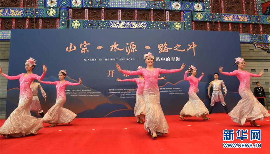 这是2月28日拍摄的展览开幕式上的舞蹈表演。2月28日,《山宗·水源·路之冲——一带一路中的青海》主题展览在北京首都博物馆开幕。据了解,本次展览共展出文物四百余件(套),旨在向国内外观众展现“一带一路”中的青海。 新华社发(任超摄)