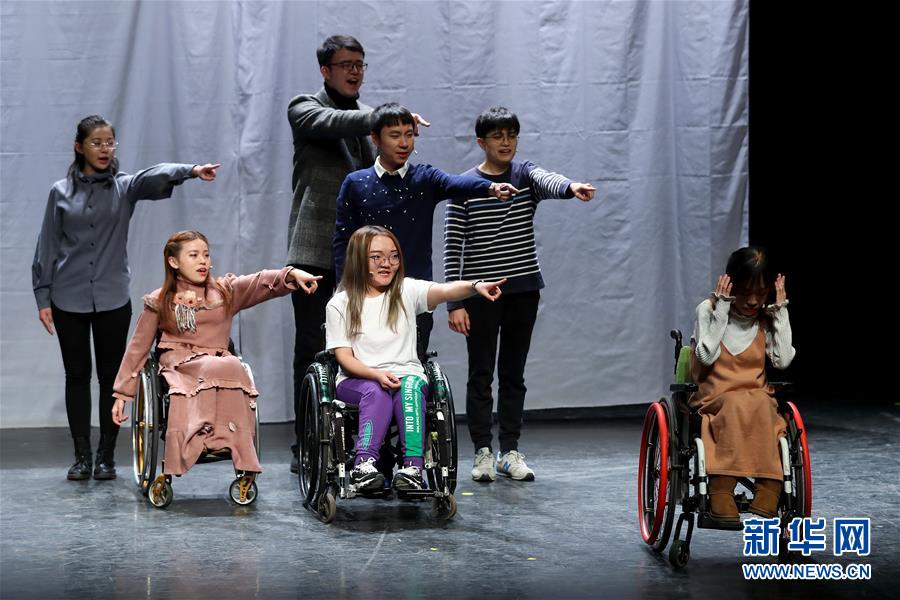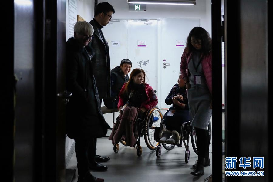 2月27日,罕见病病友在北京天桥艺术中心小剧场舞台上走位彩排。新华社记者 张玉薇 摄
