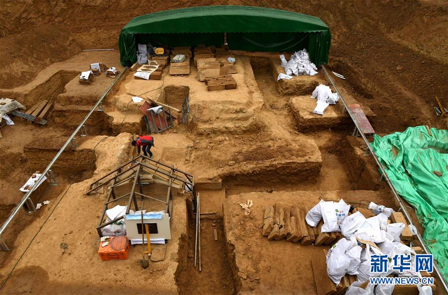 这是河南洛阳西汉空心砖券大墓发掘现场(2018年11月7日摄)。 新华社记者李安摄