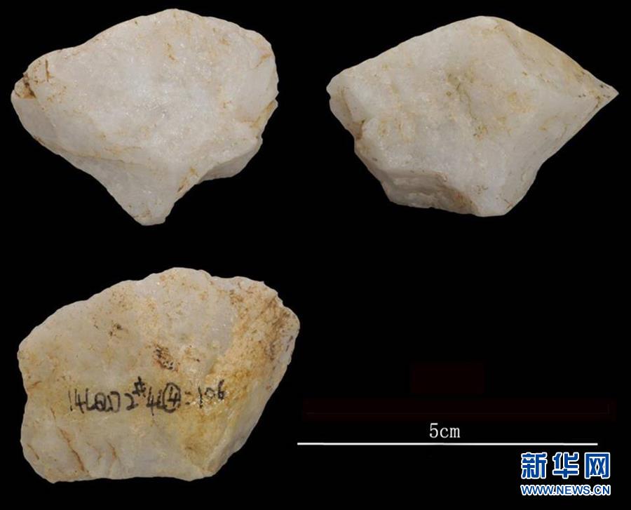 这是栾川龙泉洞旧石器遗址出土的石核(资料照片)。 新华社发