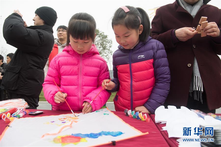 3月3日,小朋友在菰城村画纸鸢。 新华社记者翁忻旸摄