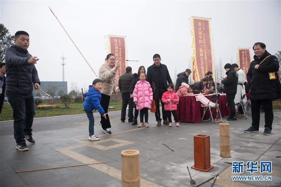 3月3日,游客在菰城村体验投壶游戏。 新华社记者翁忻旸摄
