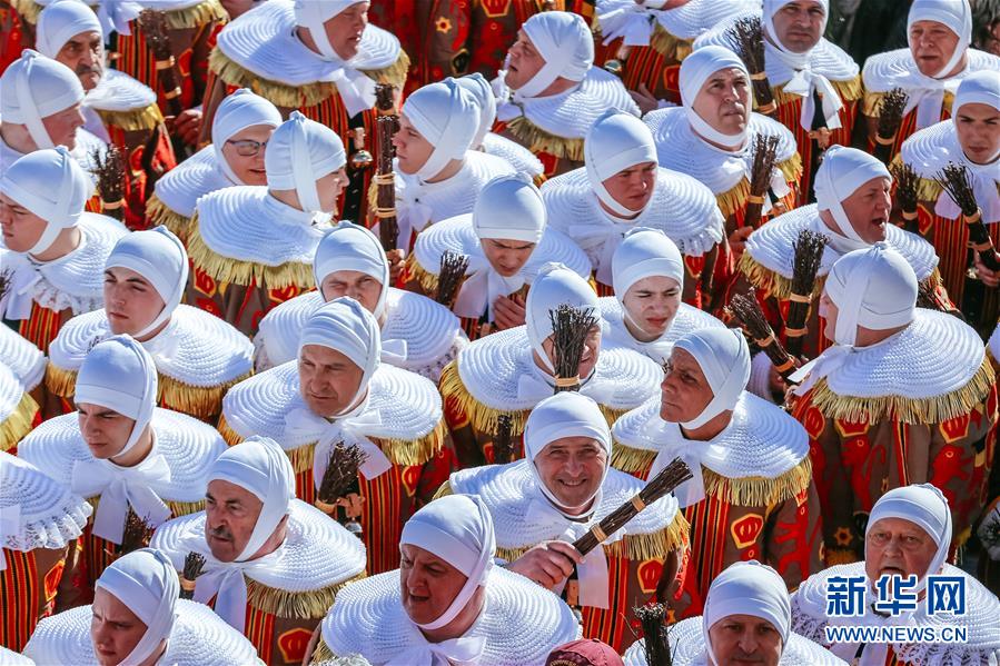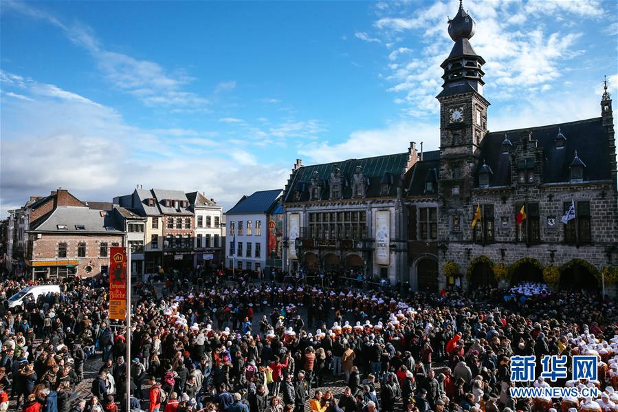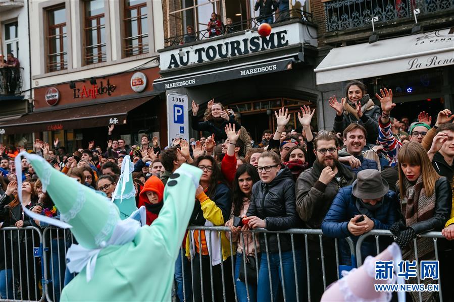 这是3月5日在比利时南部小镇班什拍摄的狂欢节现场。 当日是2019年比利时班什狂欢节的最后一天,也是高潮部分。起源于中世纪的班什狂欢节寓意辞旧迎新,并于2003年11月被列入联合国教科文组织非物质文化遗产名录。班什当地居民打扮成“憨人”“水手”“农夫”“小丑”等形象,和游客一起参与狂欢。“憨人”是吉祥与快乐的代言人,也是班什狂欢节最具标志性的形象。 新华社记者 张铖 摄