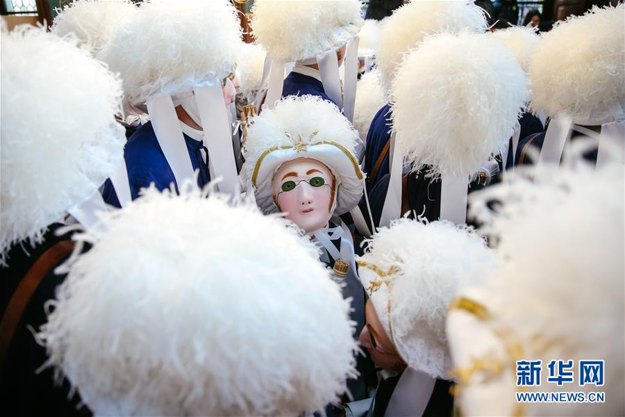 3月5日,在比利时南部小镇班什,当地居民装扮成“憨人”形象参加狂欢节。 当日是2019年比利时班什狂欢节的最后一天,也是高潮部分。起源于中世纪的班什狂欢节寓意辞旧迎新,并于2003年11月被列入联合国教科文组织非物质文化遗产名录。班什当地居民打扮成“憨人”“水手”“农夫”“小丑”等形象,和游客一起参与狂欢。“憨人”是吉祥与快乐的代言人,也是班什狂欢节最具标志性的形象。 新华社记者 张铖 摄