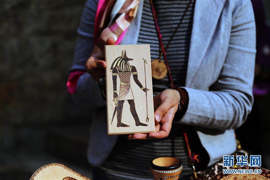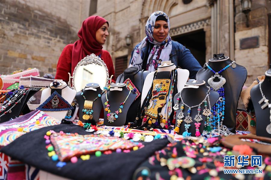 这是3月7日在埃及首都开罗拍摄的展出的手工艺品。当日,埃及首都开罗举行手工艺品展,庆祝国际妇女节。 新华社发(艾哈迈德·戈马摄)