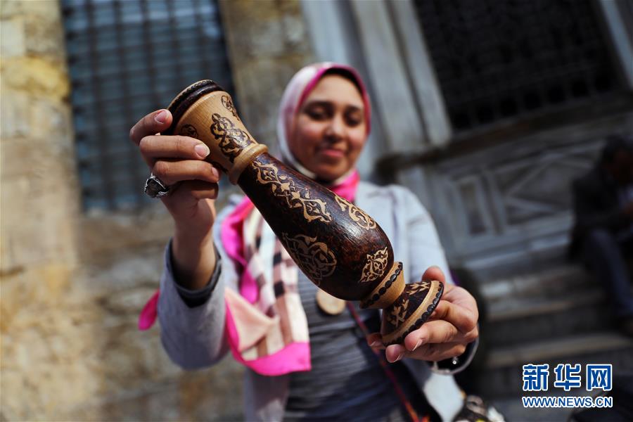 3月7日,在埃及首都开罗,一名女子展示手工艺品。当日,埃及首都开罗举行手工艺品展,庆祝国际妇女节。 新华社发(艾哈迈德·戈马摄)