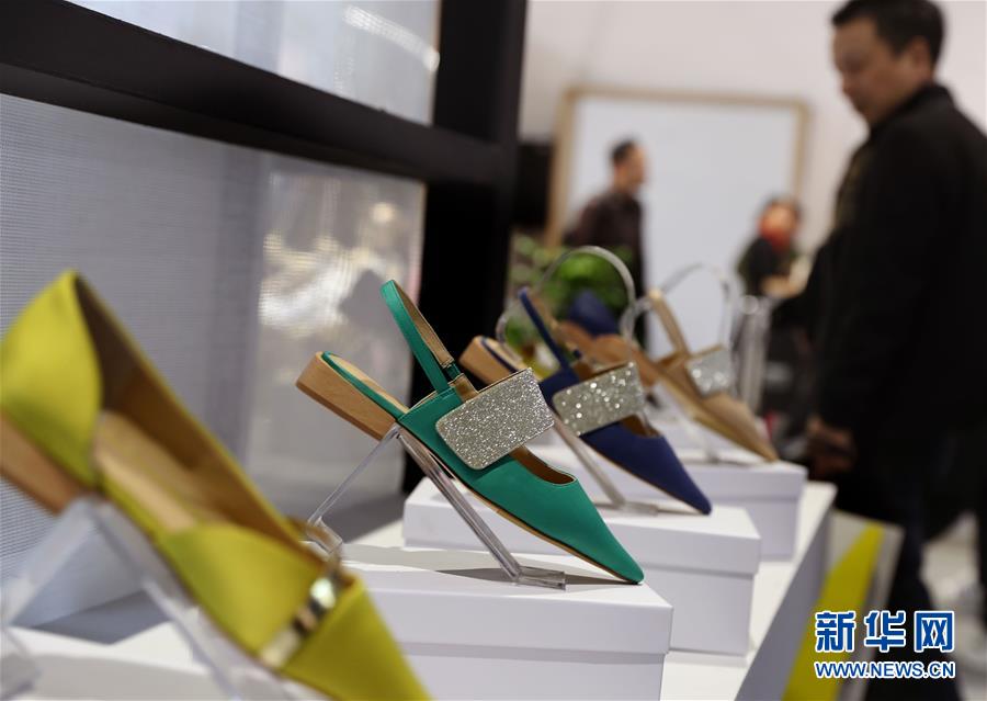 3月12日,观众在展会上参观女鞋。 新华社记者 刘颖 摄