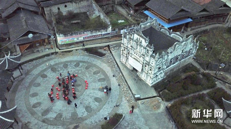 3月19日,天柱县坌处镇三门塘村村民在观看电影(无人机拍摄)。侗族青年黄宜印是贵州省黔东南苗族侗族自治州天柱县的一名公益电影放映员。从2014年起,他常年行走在大山里,为山区群众播放电影。仅2018年,黄宜印就在天柱县的37个村寨播放电影444场。近年来,天柱县设立农村公益电影补助款,为山区群众免费播放电影,并利用播放电影的时机,向群众宣传脱贫攻坚政策。2018年全年,天柱县的14个公益电影放映员,给全县315个村播放公益电影3979场。新华社记者欧东衢摄