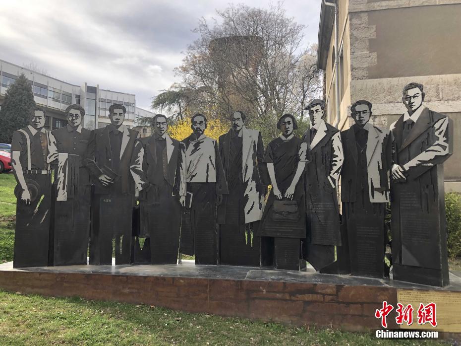 中国国家主席习近平即将对法国展开国事访问。习主席此访正值中法建交55周年和中国留法勤工俭学运动100周年。中新社记者为此专门走访里昂中法大学旧址,探寻在那里诠释中法深厚友谊的动人故事。由广州市政府赠送的雕像摆放在里昂中法大学历史博物馆的前方,雕像呈现了10位与里昂中法大学关系密切的中国学者,其中包括学校奠基人之一蔡元培、学校培养的中国人才常书鸿、戴望舒等。 中新社记者 李洋 摄