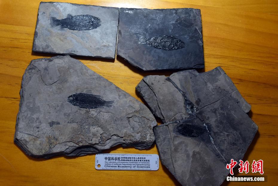 3月下旬,中国科学院古脊椎动物与古人类研究所研究员徐光辉研究团队采集发现的4块保存精美的优美玉带鱼化石(左下为正型样本)在一起展示。徐光辉研究团队在云南罗平发现2.44亿年前一种新的铰齿鱼类化石,这项最新发现也是世界上迄今发现最早的铰齿鱼类化石记录之一。徐光辉研究团队将新发现的铰齿鱼类命名为优美玉带鱼,并将其归入拱鱼目腊山鱼科,相关研究成果最近已获中国核心学术期刊《古脊椎动物学报》在线发表。中新社记者 孙自法 摄