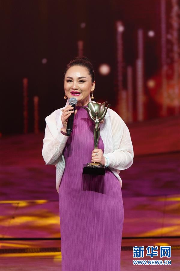 3月22日晚,艺术家李梅获得本届白玉兰奖组委会特别奖。 当日,“第29届上海白玉兰戏剧表演艺术奖主题之夜”在上海大剧院举行。 新华社记者 任珑 摄