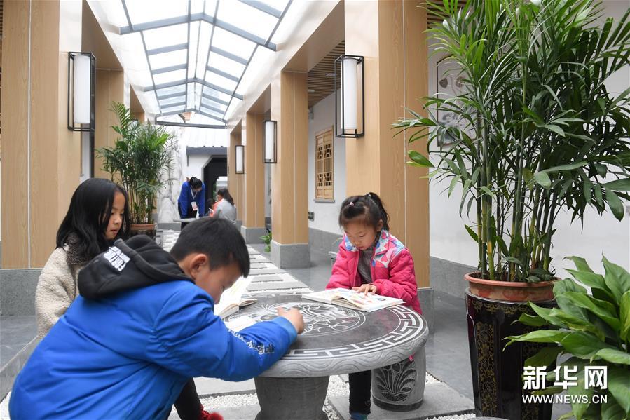 3月24日,小朋友在“青阳书苑”里阅读。 日前,安徽省合肥市肥东县长临河古街一处名为“青阳书苑”的城市阅读空间正式对公众开放,为当地居民和游客提供舒适的阅读场所。 新华社记者 张端 摄