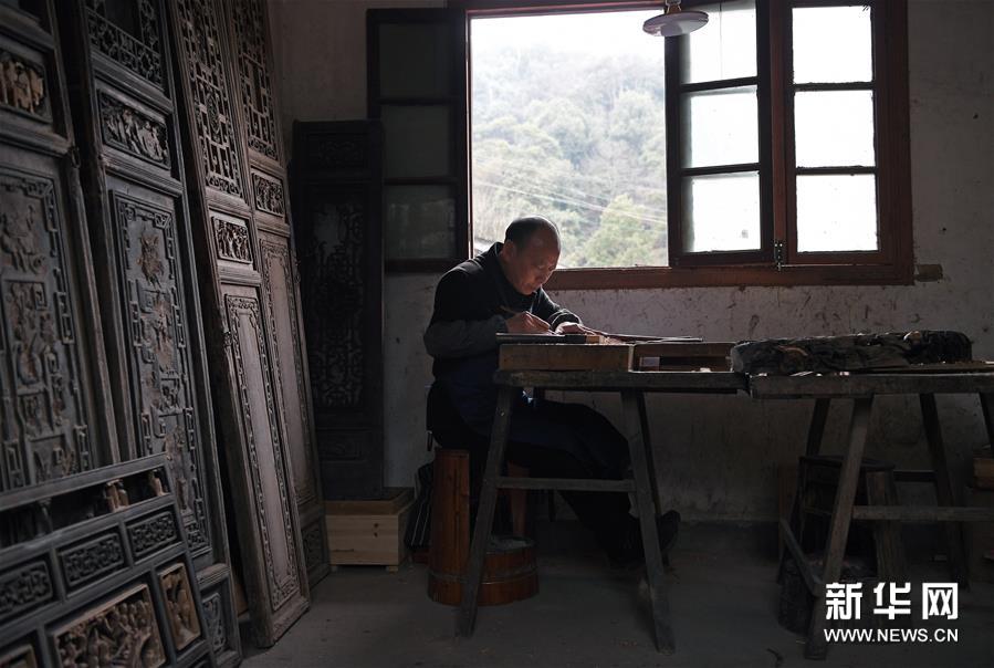 在位于江西省婺源县江湾镇汪口村的工作间里,俞友鸿在雕刻木雕作品(3月18日摄)。 俞友鸿,“婺源三雕”国家级非物质文化遗产代表性传承人。出生于一个匠人家庭的他16岁时开始跟着师傅学习木工技术,用5年时间基本掌握了“婺源三雕”技艺的所有手法。俞友鸿耗时3年制作的木雕《皇帝狩猎图》,将50余位人物和30余只鸟、兽雕刻在不到3平方尺的楠木上,体现了高超和纯熟的技艺。 钻研技法的同时,俞友鸿担负起了家乡古建筑保护和修复的任务。2002年,俞友鸿担任当地大型徽派古祠“萧江宗祠”重建的木雕总设计师,他带着一百多位木雕师傅,在典故、工艺、主题等表现形式上,完整重现了古祠的原有风貌。如今,他和徒弟们已对一百余栋明、清古建筑的木雕进行了修复。 俞友鸿收徒传艺二十余年,“老祖宗留下来的手艺,需要我们一代代传下去,也希望祖上留下的古建筑能在我们的手中重获新生。”俞友鸿说。 新华社记者万象摄