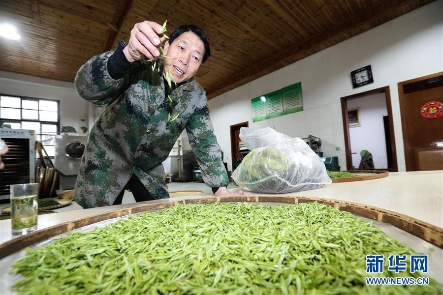 3月26日,村民展示刚采摘的鸠坑茶树的茶叶。 新华社记者 徐昱 摄