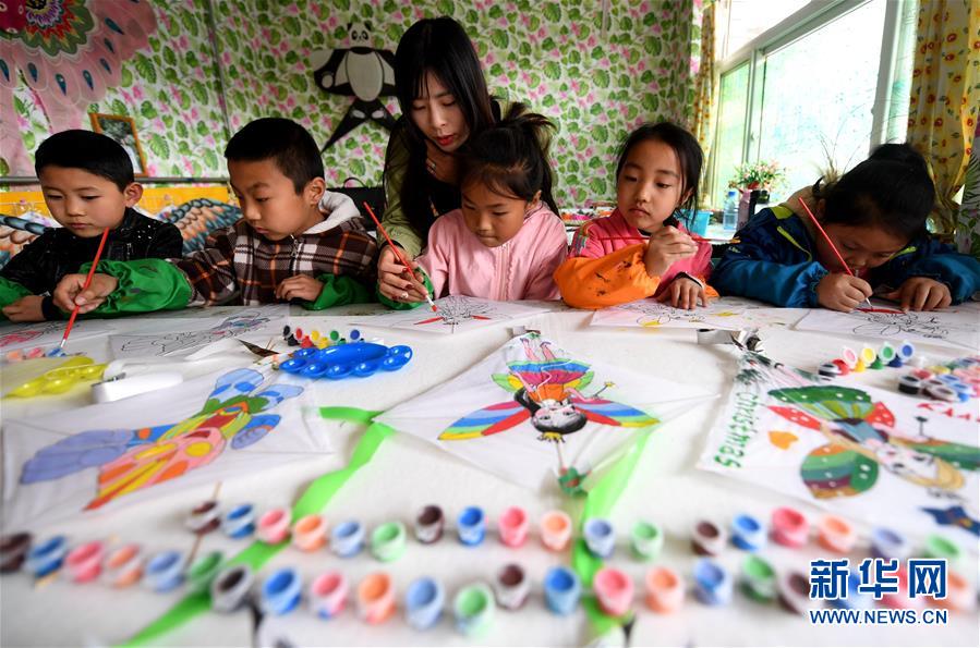 3月28日,风筝制作艺人在指导孩子们制作风筝。当日,河北省廊坊市安次区调河头乡第什里风筝小镇开展“非遗风筝有传承”主题活动,邀请风筝制作艺人为孩子们普及风筝文化知识,指导孩子们制作风筝。据悉,第什里风筝是河北省非物质文化遗产,当地有200余种宫廷风筝画谱和几十种风筝口诀。 新华社记者 王晓 摄