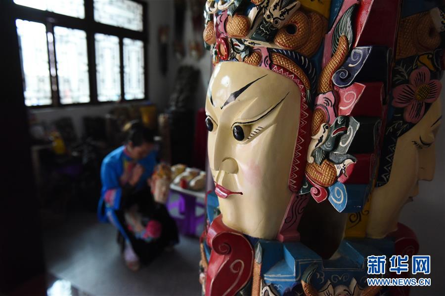 3月28日拍摄的彩绘地戏面具。新华社记者 杨文斌 摄