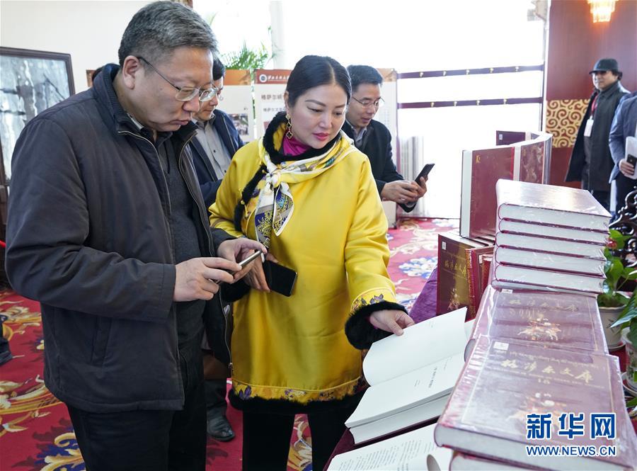 3月29日,参会人员在发布现场翻阅展示的《格萨尔文库》。 当日,《格萨尔文库》出版发布及捐赠仪式在北京举行。此次出版的《格萨尔文库》,含多民族、多语种的三卷30册,约2500万字,由国家民委所属西北民族大学的几代学者历时20余载完成,对多民族《格萨尔》史诗进行了全方位、多层次整理与研究。 新华社记者沈伯韩摄