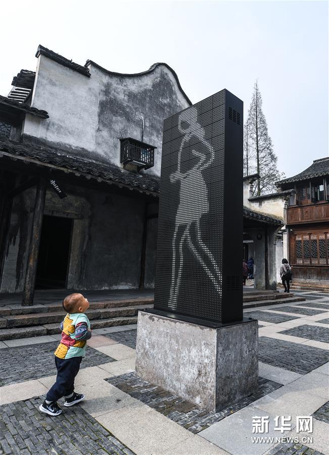 3月30日,一名孩子在乌镇西栅景区观看一件由LED屏幕展示的作品。 当日,“时间开始了——2019乌镇当代艺术邀请展”在浙江省桐乡市乌镇开幕。本次展览共邀请了来自全球23个国家和地区的60位(组)艺术家出席,共计90件(组)作品参与展出,不仅涵盖装置、影像、行为、绘画等较常见的艺术类型,还包括声音、气味、交互(设计)、网络艺术等仍在探索中的艺术形式。 新华社记者 徐昱 摄