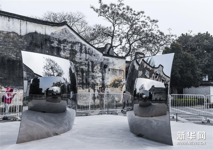 在乌镇西栅景区展出的作品“双眩”(3月30日摄)。 当日,“时间开始了——2019乌镇当代艺术邀请展”在浙江省桐乡市乌镇开幕。本次展览共邀请了来自全球23个国家和地区的60位(组)艺术家出席,共计90件(组)作品参与展出,不仅涵盖装置、影像、行为、绘画等较常见的艺术类型,还包括声音、气味、交互(设计)、网络艺术等仍在探索中的艺术形式。 新华社记者 徐昱 摄