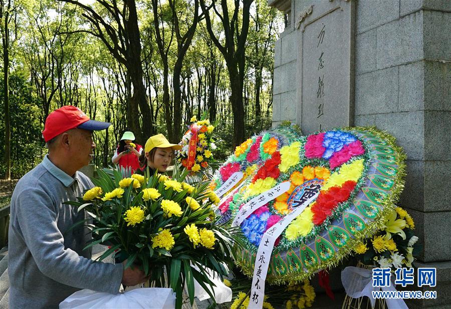 4月1日,南昌市市民向方志敏烈士墓献花。