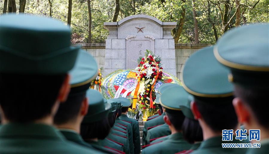 4月1日,武警江西总队官兵在方志敏烈士墓前缅怀先烈。 新华社记者 彭昭之 摄