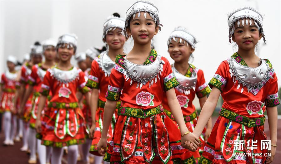 4月2日,钦州市第三十八小学的学生参加“壮族三月三·欢乐嘉年华”系列活动。 当日,广西钦州市第三十八小学举行“壮族三月三·欢乐嘉年华”系列活动,喜迎“三月三”。 新华社记者 张爱林 摄