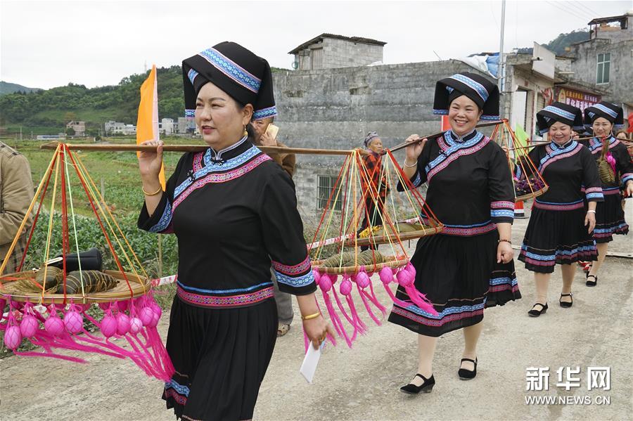 4月3日,广西百色市右江区龙川镇壮族群众挑着食品参加“三月三歌节”美食展示活动。 随着“壮族三月三”假期临近,广西各地陆续开展丰富多彩的民俗活动,喜迎节日。今年的“壮族三月三·八桂嘉年华”活动于3月25日至4月25日举行,在为期一个月的时间内,广西各地举行的各种庆祝活动预计超过900场。 新华社发(周信实 摄)