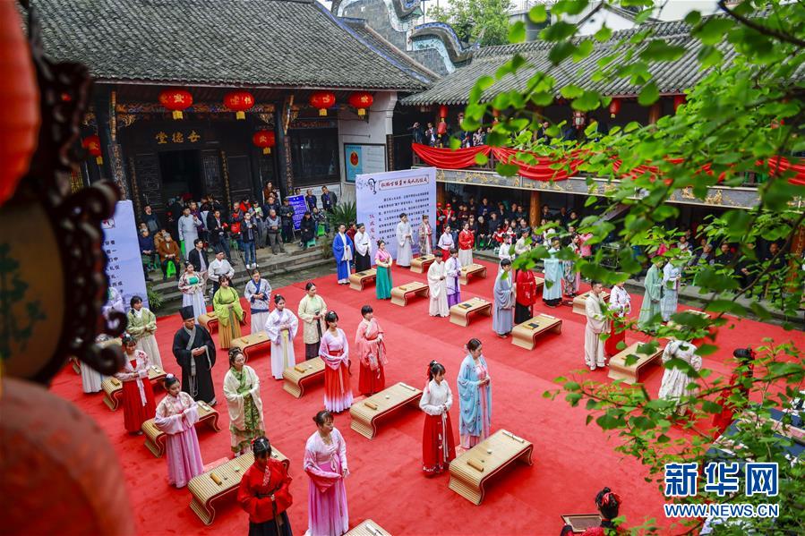 4月4日,身着传统服饰的20名适龄青年男女在重庆市永川区松溉古镇举行集体成人礼。 新华社记者 刘潺 摄
