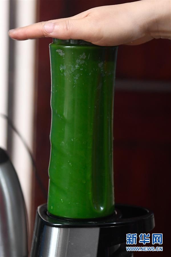 4月4日,移沿山村的村民使用搅拌机将煮青后的艾草捣碎。新华社记者 黄宗治 摄
