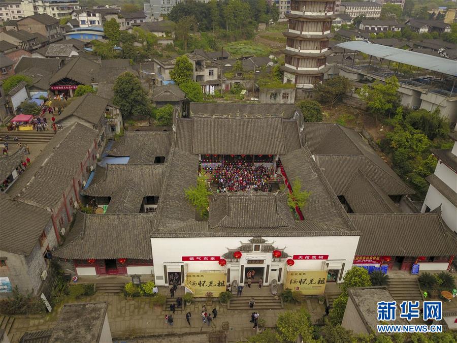 4月4日拍摄的松溉古镇街道和古建筑(无人机拍摄)。松溉古镇位于重庆市永川区,有着“一品古镇,十里老街,百年风云,千载文脉,万里长江”的美誉。2008年松溉古镇入选第四批国家级历史文化名镇。新华社记者 刘潺 摄